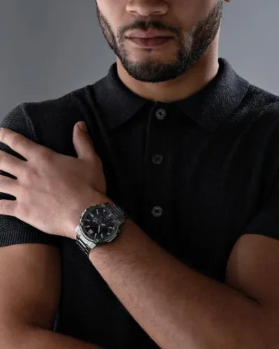 Отображение дней недели на шести языках. Функции перемещения стрелок для беспрепятственного просмотра информации на цифровых дисплеях, поиска телефона и отключения/включения звука по расписанию. Заводная головка с защитой. Раскладывающаяся тройная застежка, расстегиваемая одним касанием. Предохранительная защелка на браслете препятствует случайному расстегиванию. Водозащита 100 WR подходит для плавания с маской, трубкой и обычного плавания.
