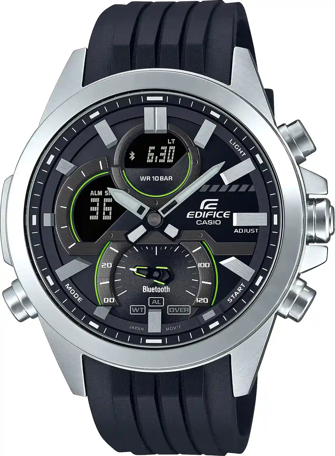 Добро пожаловать в эволюцию Speed & Intelligence - высокотехнологичная красота стального хронографа Casio EDIFICE (Касио Эдифис) ECB-30P-1A с брутальным видом и удобным подключением к смартфону. Эта модель позволяет легко синхронизироваться со смартфоном через Bluetooth® и подключаться к приложению Casio Watches для полной функциональности под сенсорным управлением. Приложение обеспечивает точный отсчет времени без нажатия кнопок, когда ваш телефон находится рядом. Таймер расписания, разработанный для удовлетворения потребностей гоночных команд, синхронизируется с приложением календаря вашего смартфона для передачи элементов расписания на телефон и отображения времени начала и окончания на ЖК-дисплее часов. Цифро-аналоговый циферблат с крупными метками, дополнительными циферблатами и элементом в форме моста выполнен в смелом дизайне.