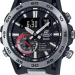 Стильная и функциональная новинка в линейке Casio Edifice (Касио Эдифис) ECB-40D-1A пронизана насквозь спортом и духом скорости. Edifice Sospensione. Мужские часы, дизайн которых вдохновлен подвеской болида Формулы-1. Ушки часов разработаны по схеме четырехрычажной подвески гоночного автомобиля. Двойная подcветка: циферблат и ЖК-дисплеи подсвечиваются светодиодом, благодаря наличию функции задержки, после отпускания кнопки освещение горит еще несколько секунд. При повороте часов в сторону лица, подсветка включается автоматически. Настраиваемое послесвечение 1,5 или 3 сек. Цвет подсветки: белый. Необритовое светонакопительное покрытие обеспечивает длительное послесвечение в темноте даже после кратковременного нахождения на свету. 12-ти и 24-х часовой формат времени. Секундомер с двумя точностями показаний: 1/1000 с (до 1 ч) и 1/10 с (после 1 ч) и временем измерения 24 ч. SPLIT-хронограф. Память на 200 кругов. Таймер обратного отсчета от 1 с до 24 ч. Мировое время – 38 городов (38 часовых поясов), всемирное координированное время (UTC). Автоматический переход на зимнее и летнее время, возможность включения/отключения данной функции. Переключение между домашним и мировым временем.
