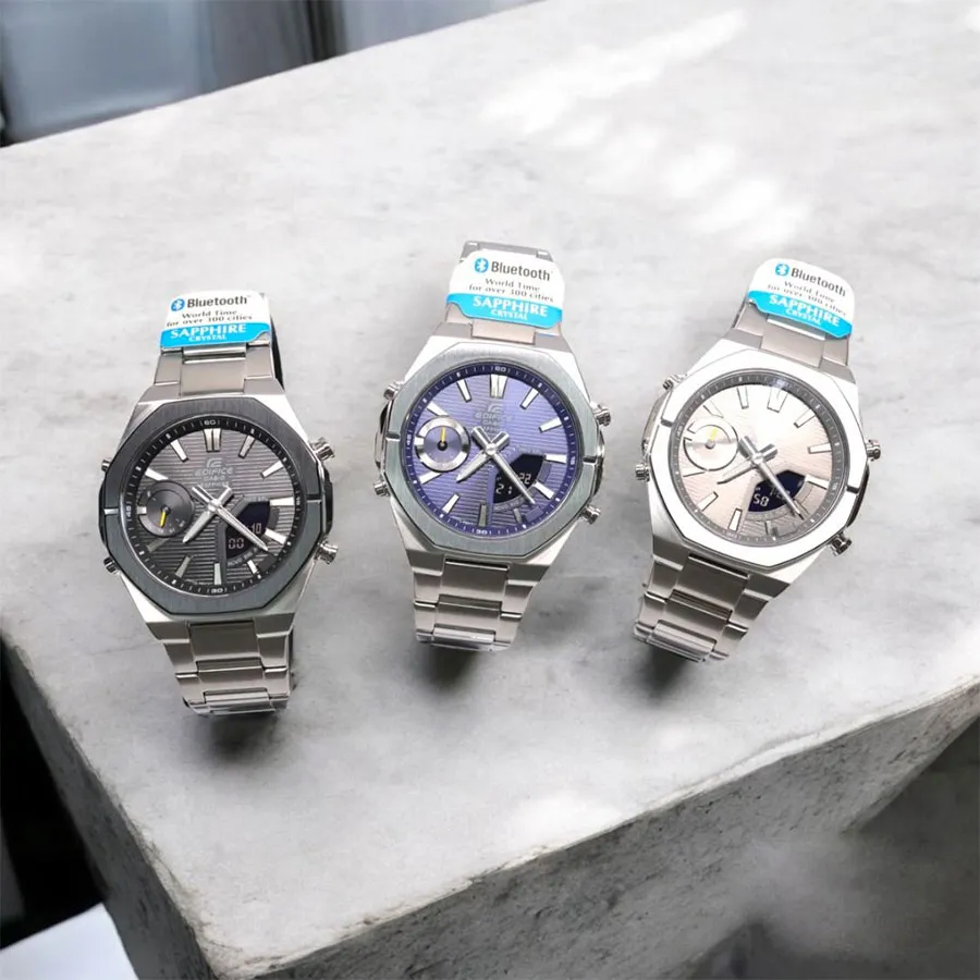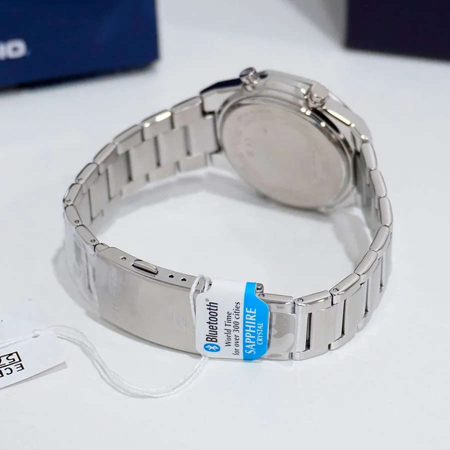 С помощью Bluetooth® вы можете подключить часы к смартфону и получить доступ к полезным функциям. Часы автоматически связываются с телефоном через Bluetooth® и проверяют точность времени 4 раза в сутки. Возможности Bluetooth в данной модели: С помощью специального приложения CASIO WATCHES возможно установить время в конкретном городе (300 городов), установить точное текущее время, установить будильник, просмотреть показания секундомера, подстроить положение стрелок. Функция поиска телефона, можно включить тоновый сигнал на телефоне, что позволит быстро найти телефон.
