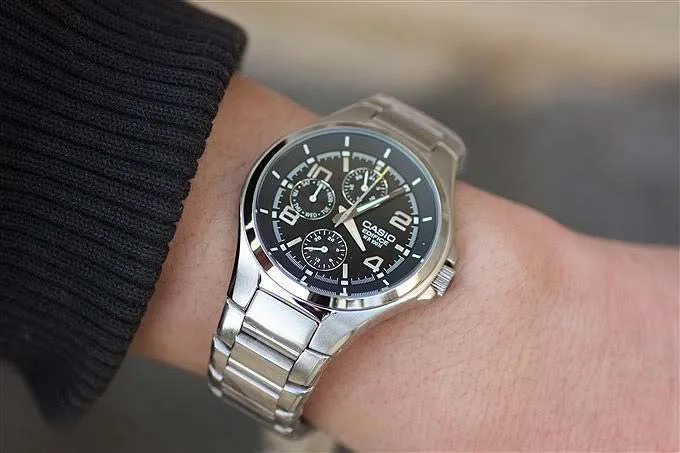Casio Edifice EF-316D-1A (Касио Эдифис) функциональные часы в сдержанном стиле станут идеальным выбором для современных мужчин. 12-ти и 24-х часовой формат времени. Число и день недели вынесены на отдельные циферблаты. Точность хода ±20 секунд в месяц, заряд батареи 2 года. Заводная головка с защитой. Завинчивающаяся задняя крышка. Браслет с раскладывающейся застежкой. Застежка с системой блокировки. Водозащита 100 WR. Подсветка люминесцентные стрелки. Стекло минеральное. Календарь число.
