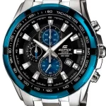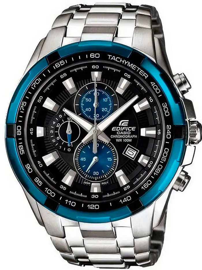 Наручные часы-хронограф Casio Edifice (Касио эдифис) EF-539D-1A2 со спортивным характером. Стильный, динамичный дизайн этих часов оценит по достоинству любой поклонник спортивного стиля. Тахиметрическая шкала. Необритовое светонакопительное покрытие обеспечивает длительное послесвечение в темноте даже после кратковременного нахождения на свету. Часы-хронограф с секундомером и тахиметром. Секундомер с точностью показаний 1 с и временем измерения 12 ч. Циферблат с метками в виде штрихов. Окошко даты находится в положении 4 часа. Заводная головка с защитой. Задняя крышка с винтовым фиксатором. Батарейка рассчитана на 2 года. Водонепроницаемость в соответствии с ISO 2281. Браслет с тройной раскладывающейся застежкой, расстегиваемой одним касанием. Застежка с системой блокировки. Водозащита 100 WR, подсветка Neobrite, стекло минеральное.