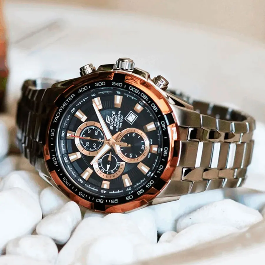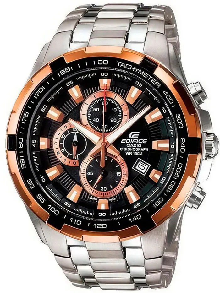 Наручные часы-хронограф Casio Edifice (Касио эдифис) EF-539D-1A5 со спортивным характером. Стильный, динамичный дизайн этих часов оценит по достоинству любой поклонник спортивного стиля. Тахиметрическая шкала. Необритовое светонакопительное покрытие обеспечивает длительное послесвечение в темноте даже после кратковременного нахождения на свету. Часы-хронограф с секундомером и тахиметром. Секундомер с точностью показаний 1 с и временем измерения 12 ч. Циферблат с метками в виде штрихов. Окошко даты находится в положении 4 часа. Заводная головка с защитой. Задняя крышка с винтовым фиксатором. Батарейка рассчитана на 2 года. Водонепроницаемость в соответствии с ISO 2281. Браслет с тройной раскладывающейся застежкой, расстегиваемой одним касанием. Предохранительная защелка на браслете препятствует случайному расстегиванию. Подсветка Neobrite, стекло минеральное.