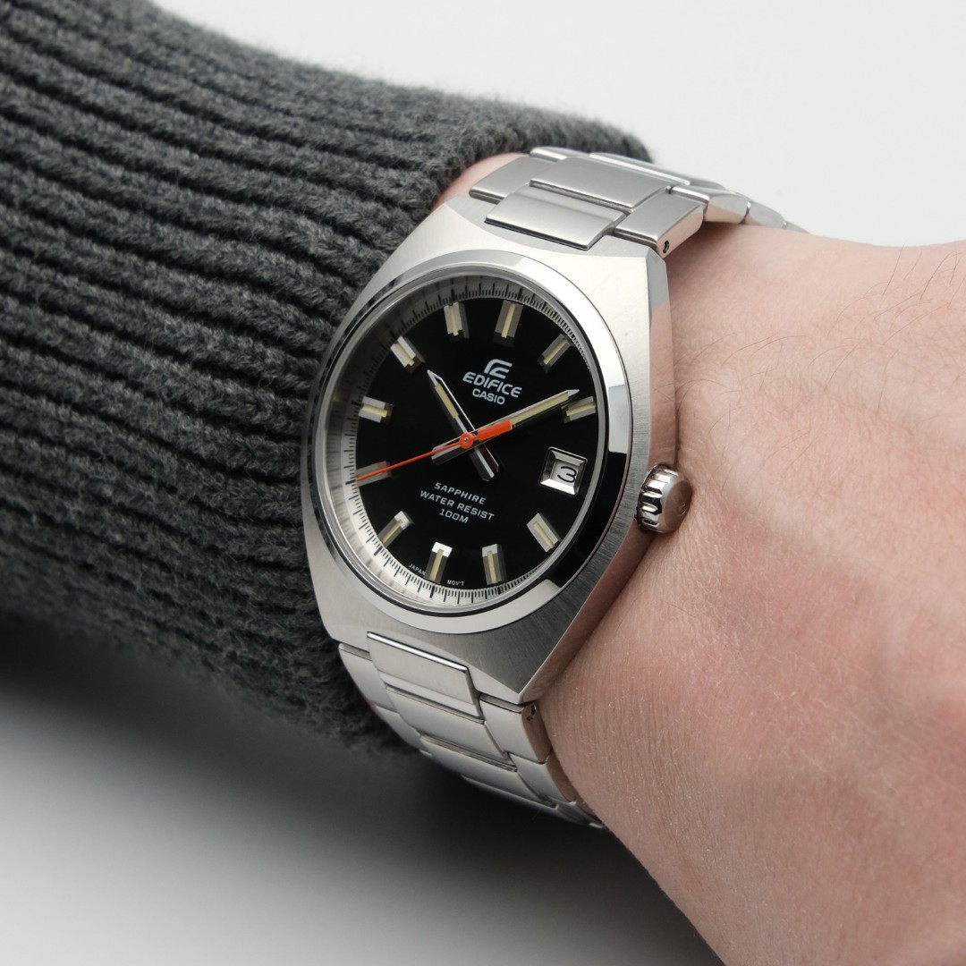Наручные часы Casio Edifice (Касио эдифис) EFB-109D-1A. Необритовое светонакопительное покрытие стрелок и меток (светятся в темноте).На данной модели отображается дата. Сапфировое стекло с антибликовым покрытием, устойчивое к появлению царапин. Завинчивающаяся задняя крышка. Литой браслет с тройной раскладывающейся застежкой, расстегиваемой одним касанием. Предохранительная защелка на браслете препятствует случайному расстегиванию. Водонепроницаемость WR 100.