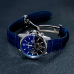 На данной модели отображается текущая дата. Секундомер может отсчитывать до 59 минут 59 секунд. Стрелки и метки покрыты люминесцентным напылением (светятся в темноте). Установлено сапфировое стекло с антибликовым покрытием, устойчивое к появлению царапин. Завинчивающаяся задняя крышка. Кожаный ремешок. Застежка-клипса автомат.