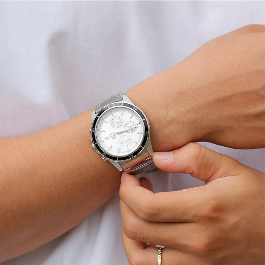 Наручные часы Casio Edifice (Касио эдифис) EFR-526D-7A стильный хронограф по достоинству оценят современные мужчины. Необритовое светонакопительное покрытие обеспечивает длительное послесвечение в темноте даже после кратковременного нахождения на свету. Циферблат с метками в виде штрихов. Часы-хронограф с секундомером точностью 1/10 сек и временем измерения 1 ч. Заводная головка с защитой. Задняя крышка с винтовым фиксатором. Батарея рассчитана на 3 года. Стальной браслет с тройной раскладывающейся застежкой, расстегиваемой одним касанием. Стекло минеральное, водонепроницаемость 100 WR.