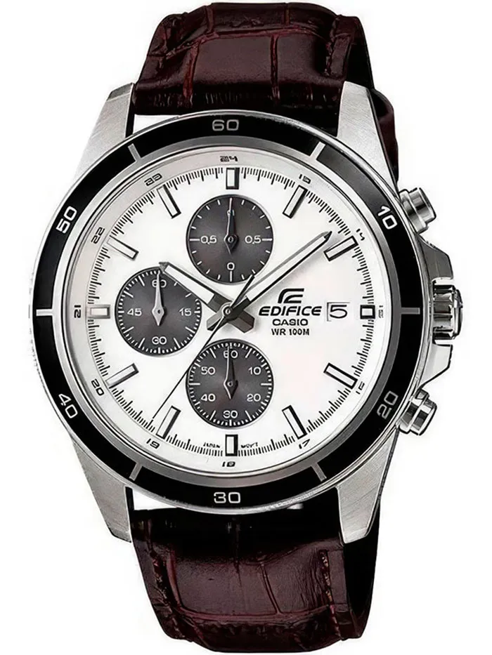 Наручные часы Casio Edifice (Касио эдифис) EFR-526L-7A стильный хронограф по достоинству оценят современные мужчины. Необритовое светонакопительное покрытие обеспечивает длительное послесвечение в темноте даже после кратковременного нахождения на свету. Циферблат с метками в виде штрихов. Часы-хронограф с секундомером точностью 1/10 сек и временем измерения 1 ч. Заводная головка с защитой. Задняя крышка с винтовым фиксатором. Батарея рассчитана на 3 года. Ремешок сделан из высококачественной натуральной кожи. Стекло минеральное, водонепроницаемость 100 WR.