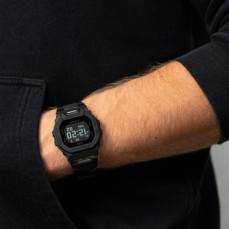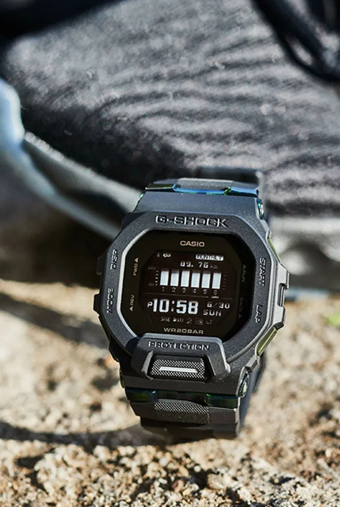 Часы с цифровой индикацией времени, функцией шагомера и технологией Bluetooth® Smart. С помощью Bluetooth® вы можете подключить часы к смартфону и с помощью приложения G-SHOCK Move® получить доступ к полезным функциям. Часы автоматически связываются с телефоном через Bluetooth® и проверяют точность времени 4 раза в сутки. Просмотр количества шагов за 24 часа, интенсивность упражнений и физических нагрузок. Просмотр еженедельного количества шагов и числа сожженных калорий. Просмотр информации секундомера о времени прохождения кругов или промежуточных результатах (до 100 записей).
