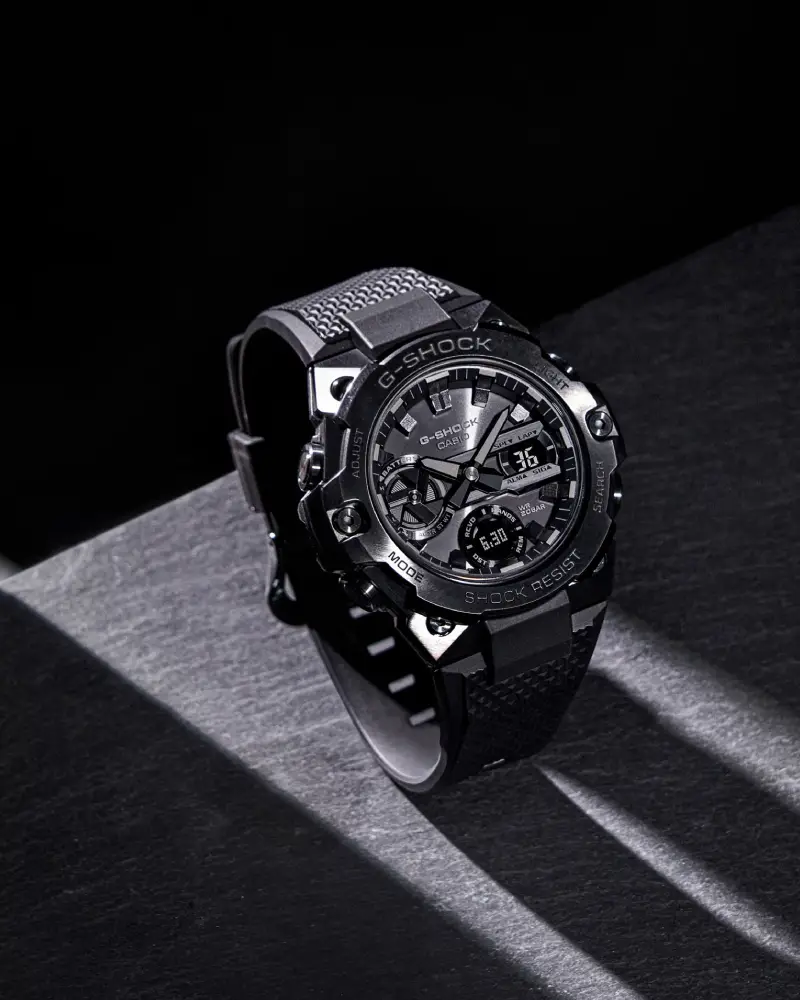 Противоударный корпус защищает механизм от ударов и вибрации. Ударопрочная конструкция Carbon Core Guard объединяет корпус и заднюю крышку в единый карбоновый моноблок. Ремешок из полимерного материала с классической застежкой.