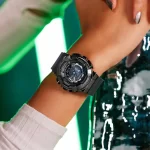 Двойная подcветка: циферблат и ЖК-дисплей подсвечиваются светодиодом, благодаря наличию функции задержки, после отпускания кнопки освещение горит еще несколько секунд. Длительность свечения 1,5 или 3 сек. Цвет подсветки: белый. Необритовое светонакопительное покрытие обеспечивает длительное послесвечение в темноте даже после кратковременного нахождения на свету.