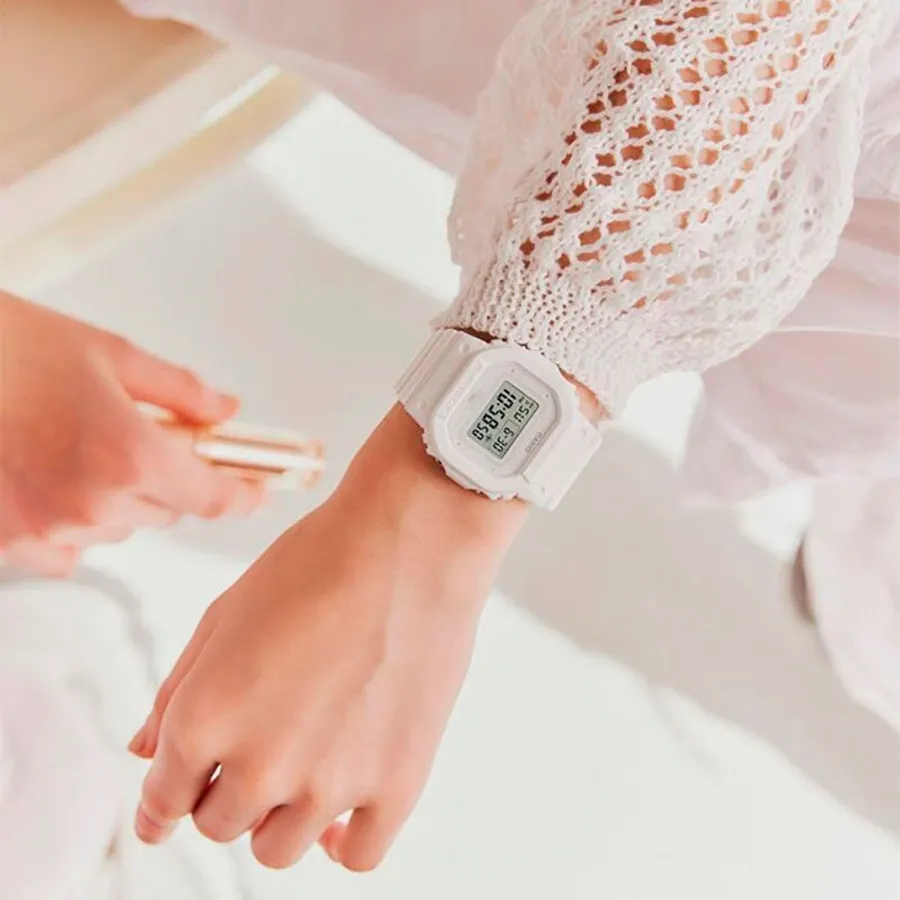 Женские часы Casio G-Shock (Касио Джи-Шок) созданные для представительниц прекрасного пола, теперь девушки уж точно получат свои компактные “квадраты” — Casio показали свежую серию GMD-S5600 как раз для прекрасной половины. Металлизированный контур золотого оттенка вокруг цифрового дисплея часов завораживающе играет на свету за счет специальной технологии нанесения с помощью газового осаждения.