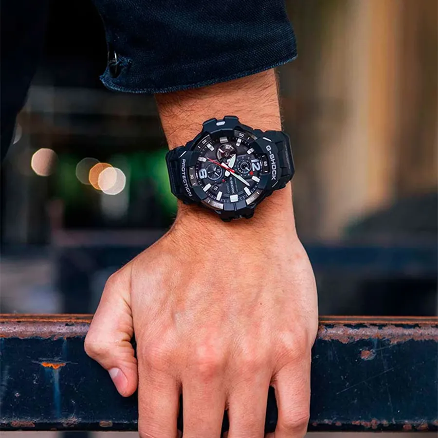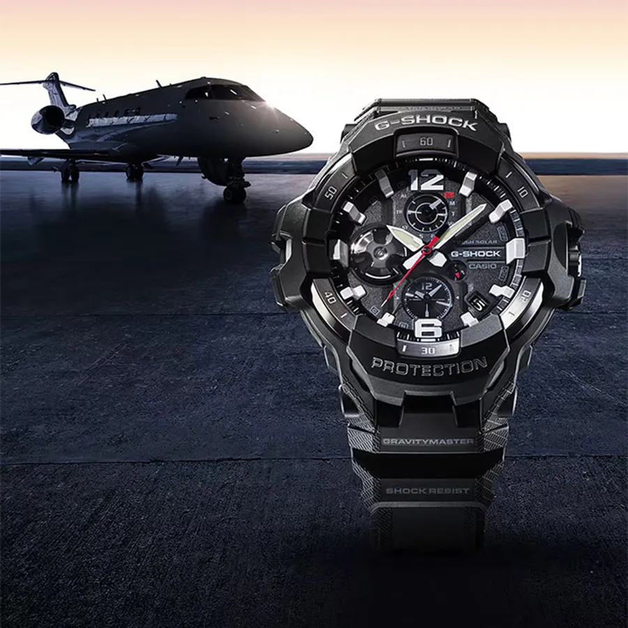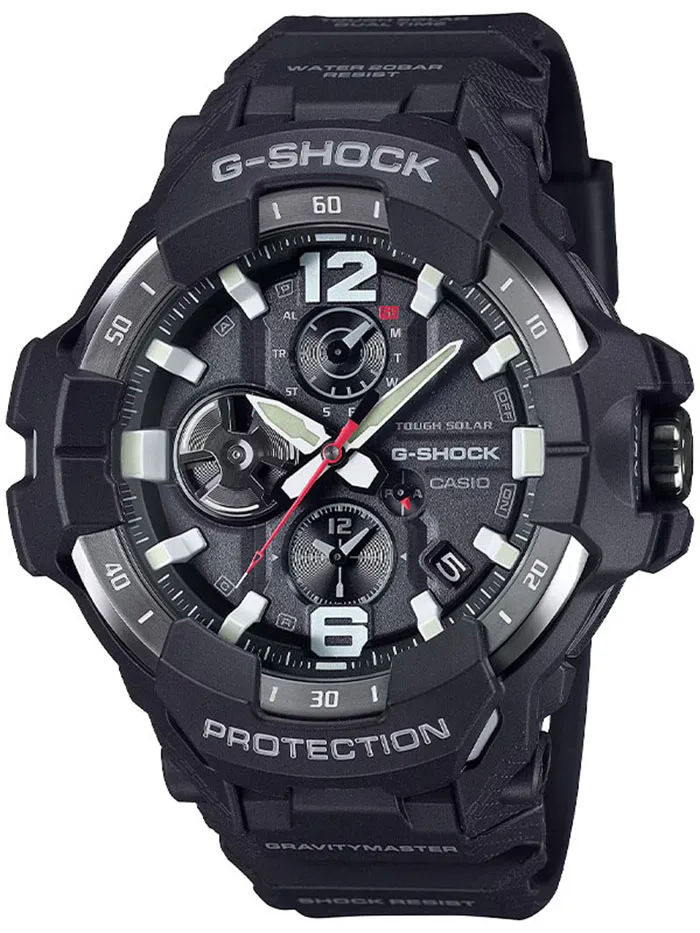 Эта модель из серии G-Shock Gravitymaster специально разработанна для пилотов, работающих в суровых условиях. Аккумулятор данной модели заряжается от любого источника света. Срок работы аккумулятора с полным зарядом — около 5-ти месяцев при обычном использовании без воздействия света после зарядки и 18 месяцев при хранении в полной темноте с включенной функцией энергосбережения после полной зарядки. Примерный срок службы аккумулятора — 10 лет. Имеется режим энергосбережения (стрелки останавливаются для экономии энергии, когда часы остаются в темноте) и индикатор уровня заряда батареи.